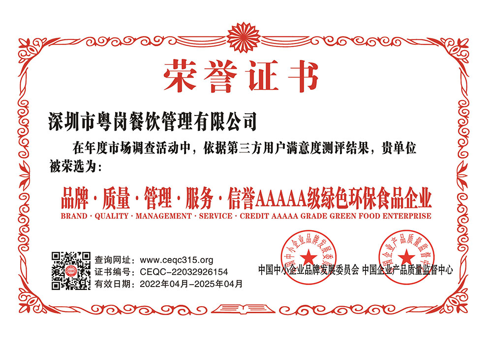 深圳市粵崗餐飲管理有限公司,是一家集蔬菜種植和農副產品配送為一體的專業型餐飲公司,主要為學校、工廠企事業機關單位提供蔬菜和農副產品配送服務。公司自成立以來始終以質優價廉、服務至上為原則,嚴格按照ISO:9001國際標準體系進行管理。同時建立了行業領先的配送中心、大型冷庫和保鮮庫、檢測中心以及專業化的配送團隊,能長期安全、穩定、準時的配送貨物。我們所有蔬菜均經過初步加工、無黃葉,無泥沙等雜質,利用率達97%以上...保障向用戶提供的各類食材的衛生和質量。公司為了適應不同客戶的需求,配有專業人員和配送車輛,實行“一對一”的服務體制,一心一意的為客戶服務,秉承粵崗誠實守信、服務第一、客戶至上的服務標準,真正讓客戶花最少的錢吃最好的菜。粵崗多年來何以欣欣向榮,因為我們知道只有勇于擔當責任,才能承擔更大的責任,就是因為 粵崗員工貫徹公司態度決定一切、細節決定成敗的真理,從質量抓起,從服務做起,才創造了如今的規?;?、統一性配送、專業化服務的粵崗。